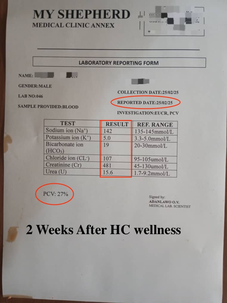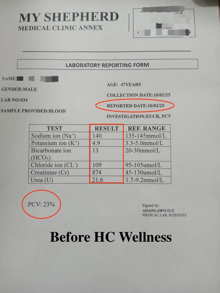 Below is a before and after test result of one of the 20,000 people HC wellness has saved right here in Nigeria (Akure Ondo State).